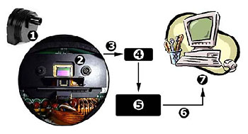 O modo como um sensor CCD transforma uma imagem num ficheiro de computador é relativamente simples. A luz que incide num conjunto de centenas de milhares de detectores (“pixels”), produz cargas eléctricas, que são por sua vez lidas, medidas, convertidas em números e gravadas num ficheiro de computador. As câmaras deste tipo, necessitam portanto, de um computador (PC ou Mac) para poderem ser operadas.