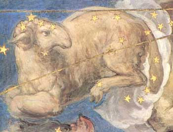 Áries, o Carneiro – Pintura de artista desconhecido em Villa Farnese, Caparola, Itália (~1573) – The Glorious Constellations – Giuseppe Maria Sesti. Crédito: http://www.ufrsd.net/staffwww/stefanl/myths/stories.htm