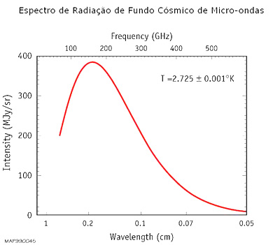 A radiação electromagnética de origem cósmica, no domínio das micro-ondas, prevista pelo big bang seria descoberta em 1965 quase acidentalmente por Arno Penzias e Robert Wilson, quando tentavam descobrir a origem de um ruído de fundo misterioso na sua antena de rádio, e identificada um ano mais tarde por Robert Dicke e James Peebles. Desde então têm sido realizadas inúmeras observações para determinar rigorosamente o espectro da radiação de fundo cósmico de micro-ondas (FCM), para saber se se trata de uma radiação isotrópica (ideal) tipo corpo negro, e obter com precisão a sua temperatura característica. Essas observações confirmaram os resultados iniciais de Penzias e Wilson: fixaram o valor da temperatura efectiva em 2,73 K e mostraram que a radiação era extraordinariamente isotrópica: quando se observa a radiação em diferentes direcções concluímos que as variações de temperatura são inferiores a 0,0001 do grau Celsius. Este resultado constituiu a prova mais sólida a favor do modelo do big bang.