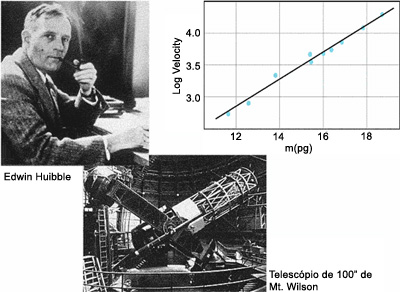 Recordemos brevemente as observações astronómicas que foram determinantes para o estabelecimento do modelo do universo em expansão. A este modelo seria dado depreciativamente o nome Big Bang, pelo cosmólogo inglês Sir Fred Hoyle, nos finais dos anos 40, num programa de rádio na BBC, para acentuar o que lhe parecia ser uma consequência grotesca da relatividade geral – uma colossal criação de matéria e energia a partir do nada.