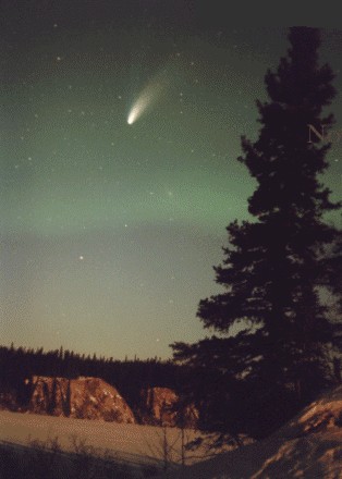 O cometa Hale-Bopp e uma aurora boreal.