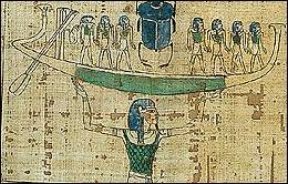 Na vinheta, visualizamos o sarcófago sobre a barca solar que transportará o morto, à semelhança de Rá, isto é a semelhança do Sol que circula diariamente no céu nocturno desde o ocaso até o nascer. Os egípcios preocupavam-se particularmente com o destino dos seus corpos e mentes após a morte, daí a preocupação de assemelhar tal acto a um deus maior – o Sol.