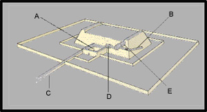Figura 2.1 – Mastaba - A – Pátio de entrada, B – Acesso ao tumulo, C – Corredor de entrada, D – Antecâmara, E – Capela