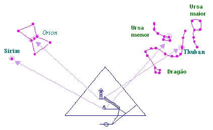 Na Grande pirâmide de Gizé, para além dessa orientação segundo a direcção Norte-Sul, existem outras condutas que nos leva a determinadas zonas do céu nocturno.