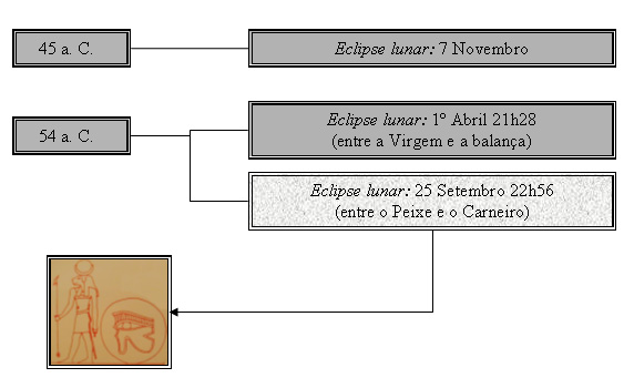 No Zodíaco de Dendera vemos a representação de um eclipse lunar ao lado da constelação do Peixe, é por isso normal acreditar que a sua datação é dessa época.