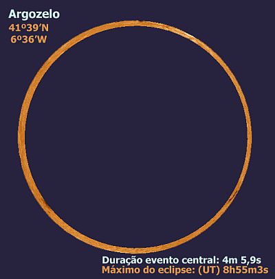 Figura 2 - Simulação do eclipse anular visível em Argozelo, Bragança. Créditos : Mário Ramos e Clube Astronómico 2000