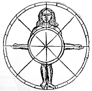 O centro da circunferência coincidia com a posição da Estrela Polar. As regras descritivas serviam para se conhecer a posição da Kochab à meia-noite. Essa posição era descrita tendo como referência algumas partes do corpo humano representado na figura 4. Assim, apareciam regras como: