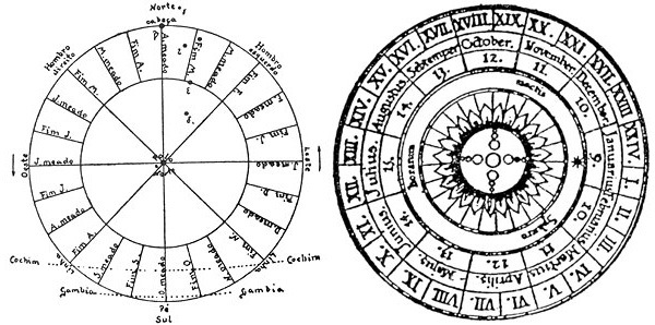 Figuras 6 e 7 — Roda de horas pela Polar, e Nocturlábio de Raimundo Lullo.