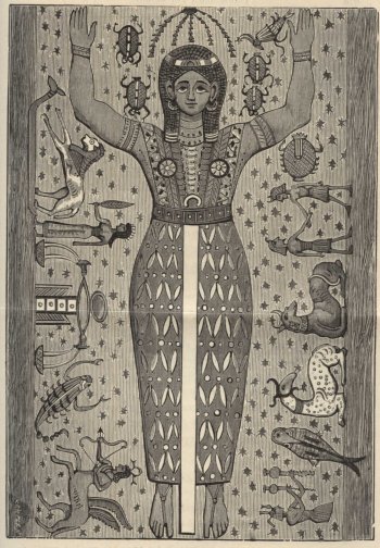 Sarcófago egípcio onde surgem representadas as doze constelações do Zodíaco. Reproduzido de Flammarion, As Terras do Céu.