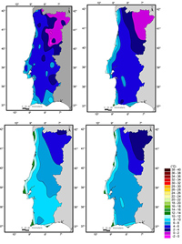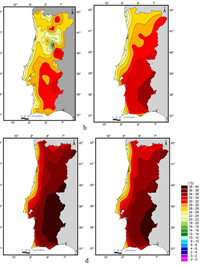 Os modelos globais projectam aumentos substanciais de temperatura e alterações significativas da precipitação na região portuguesa, até ao final do século XXI. Os cenários climáticos obtidos com modelos regionais (neste caso os dados são referentes ao modelo HadRM3 do Hadley Center UK [10] para os cenários de emissões SRES A2 e B2) para Portugal continental indicam igualmente claras alterações nos padrões climáticos do final do século (i.e. 2070-2099), relativamente ao período de controlo (i.e. 1961-1990).
