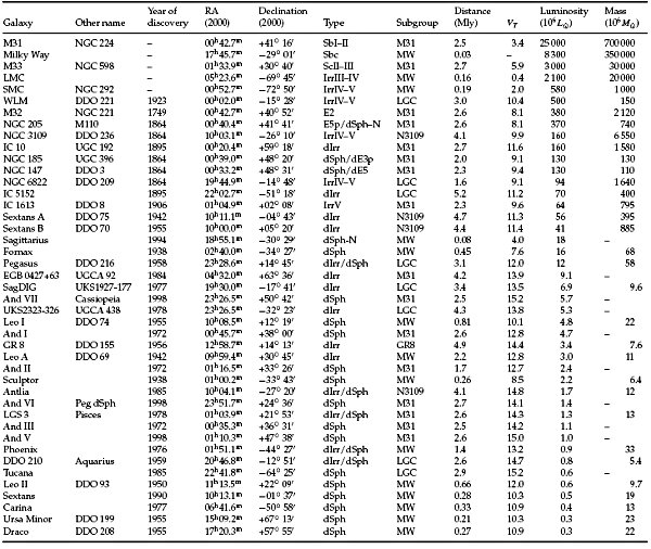 Tal como já fora anteriormente referido, o Grupo Local é constituído por cerca de 40 galáxias, as quais são apresentadas na tabela seguinte, tendo em conta aquelas que se pensa que actualmente são constituintes do Grupo Local: