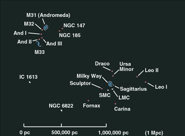 Esquema dos subgrupos de galáxias do Grupo Local.