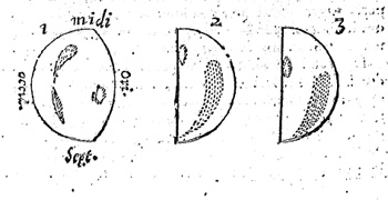Figura.1: Observação de Vénus por Jean-Dominique Cassini entre Fevereiro e Abril de 1667. “Até ao vigésimo oitavo dia de Abril, não fui capaz de identificar nenhuma parte brilhante semelhante àquela que havia já observado, mas nesse dia, um quarto de hora antes do Sol se levantar, pude novamente observar sobre o disco deste Planeta, do qual metade ou quase estava então iluminada, uma parte brilhante situada perto da secção”.