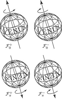 π+) e dois retrógrados (F
