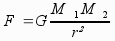 onde F é a força da gravidade, G é a constante da gravitação universal, M1 e M2 as massas de dois objectos cujos centros de massa se encontram a uma distância r.