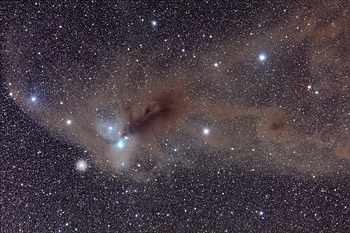 Nebulosa de gás e poeira (NGC 6726) onde a síntese de matéria orgânica em torno dos grãos de poeira é frequente. (Crédito: Loke Kun Tan, StarryScapes)