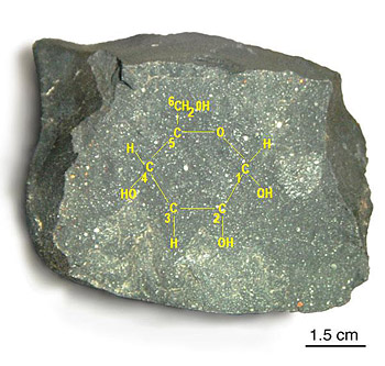 O açúcar Glucose uma das centenas de moléculas orgânicas complexas descobertas no meteorito de Murchison.