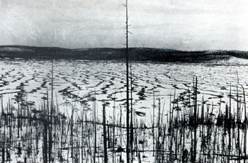 A região central da grande explosão da Sibéria de 1908. (Crédito: Comissão de Meteoritos da Academia de Ciências da Rússia)