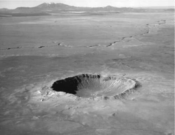 A conhecida cratera do Arizona – Meteor Crater – formada há 50 mil anos pela colisão de um meteorito metálico com a Terra. (Crédito: USGS)