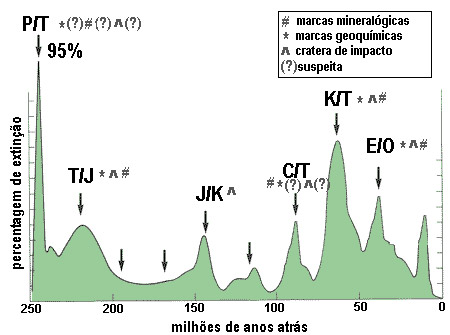 | Crateras de Impacto | 31+/- 1 28 | Rampino & Stothers (1984) Alvarez e Muller (1984) |